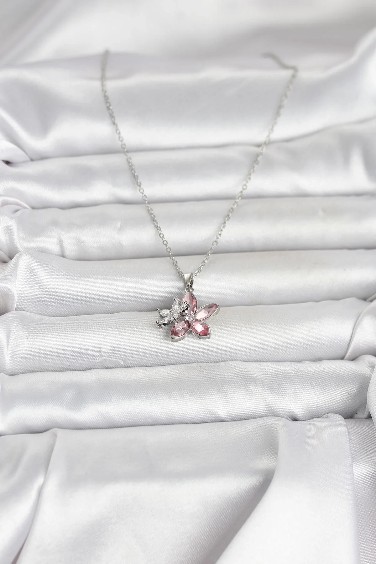 316L Çelik Zincir Gümüş Renk Pembe Lotus Model Kadın Kolye