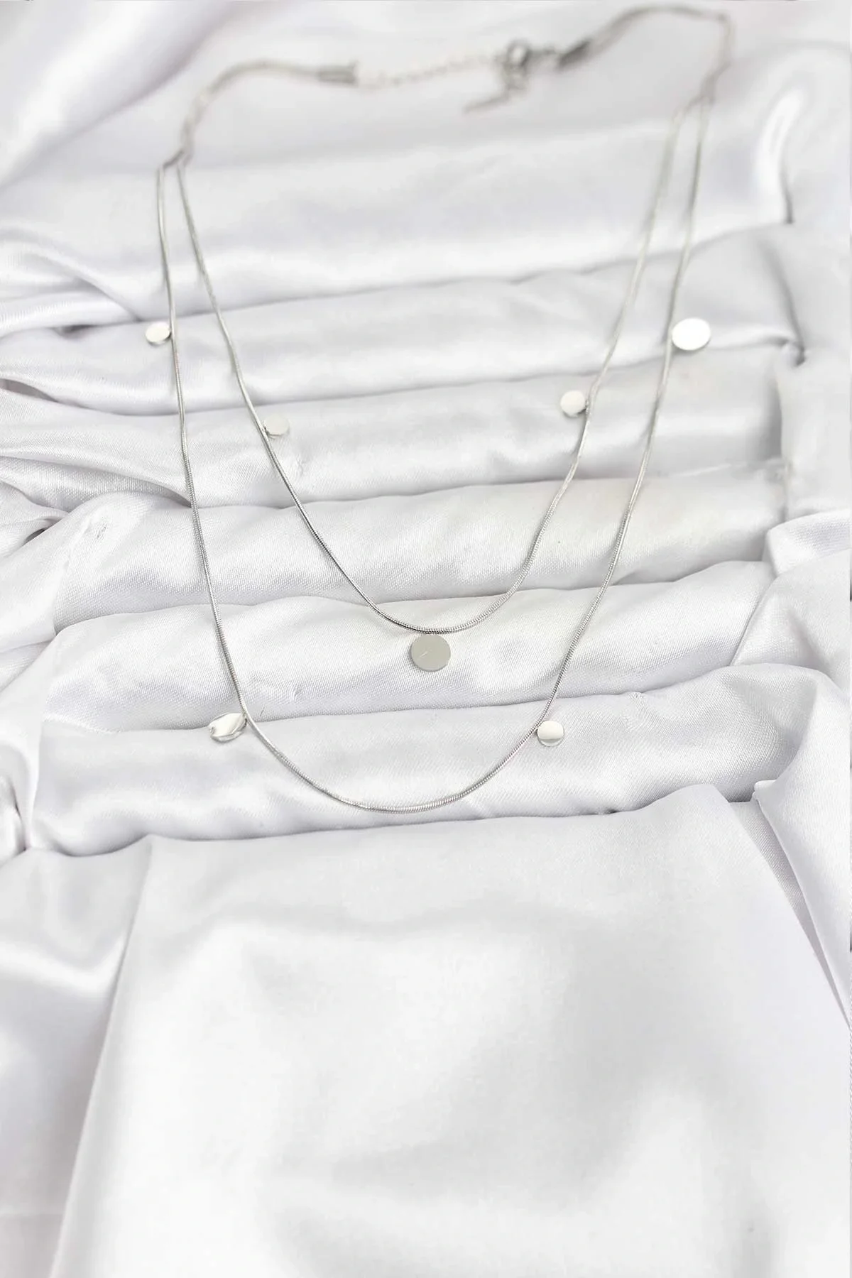 316L Çelik Zincir Gümüş Renk Pullu Kadın Kolye