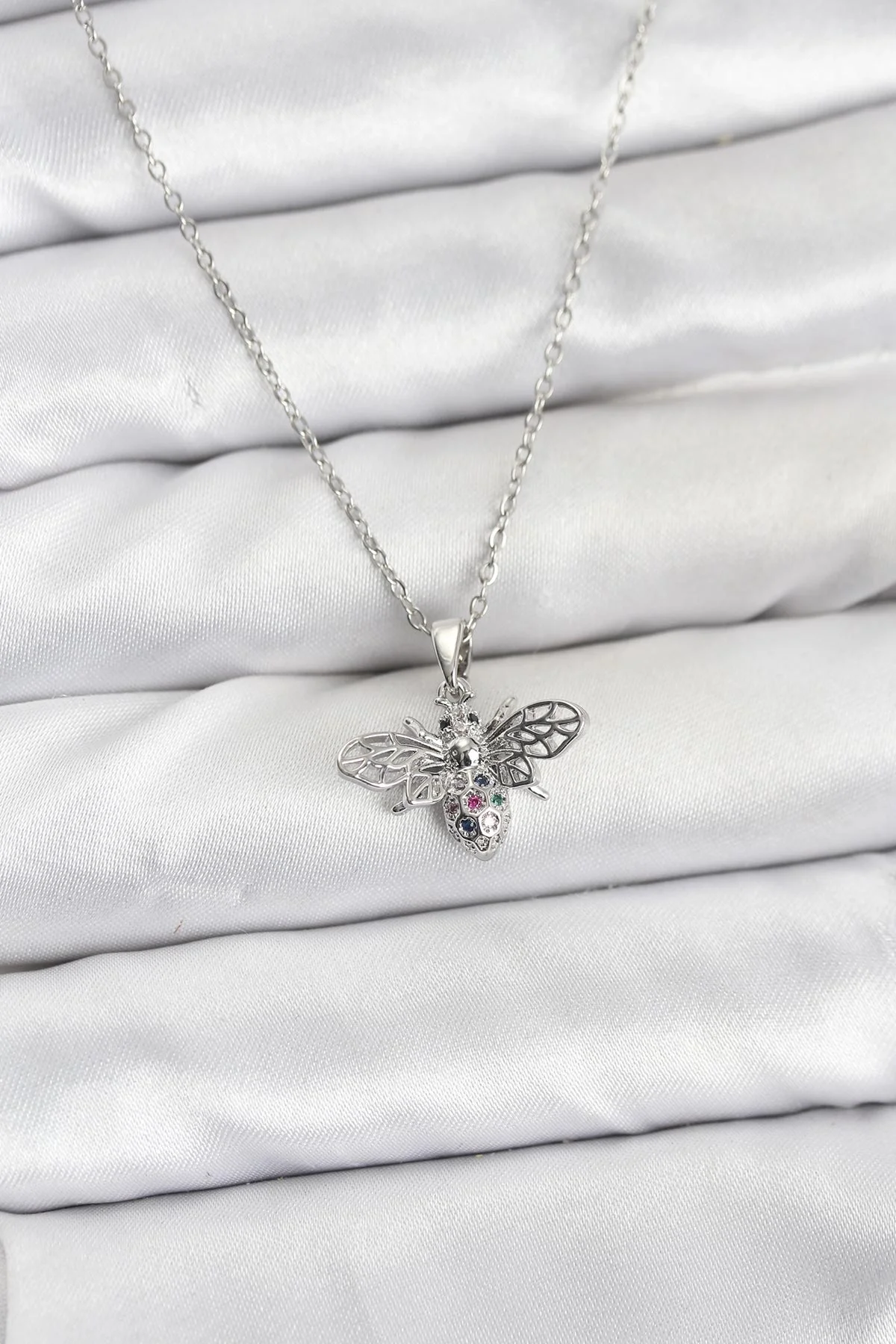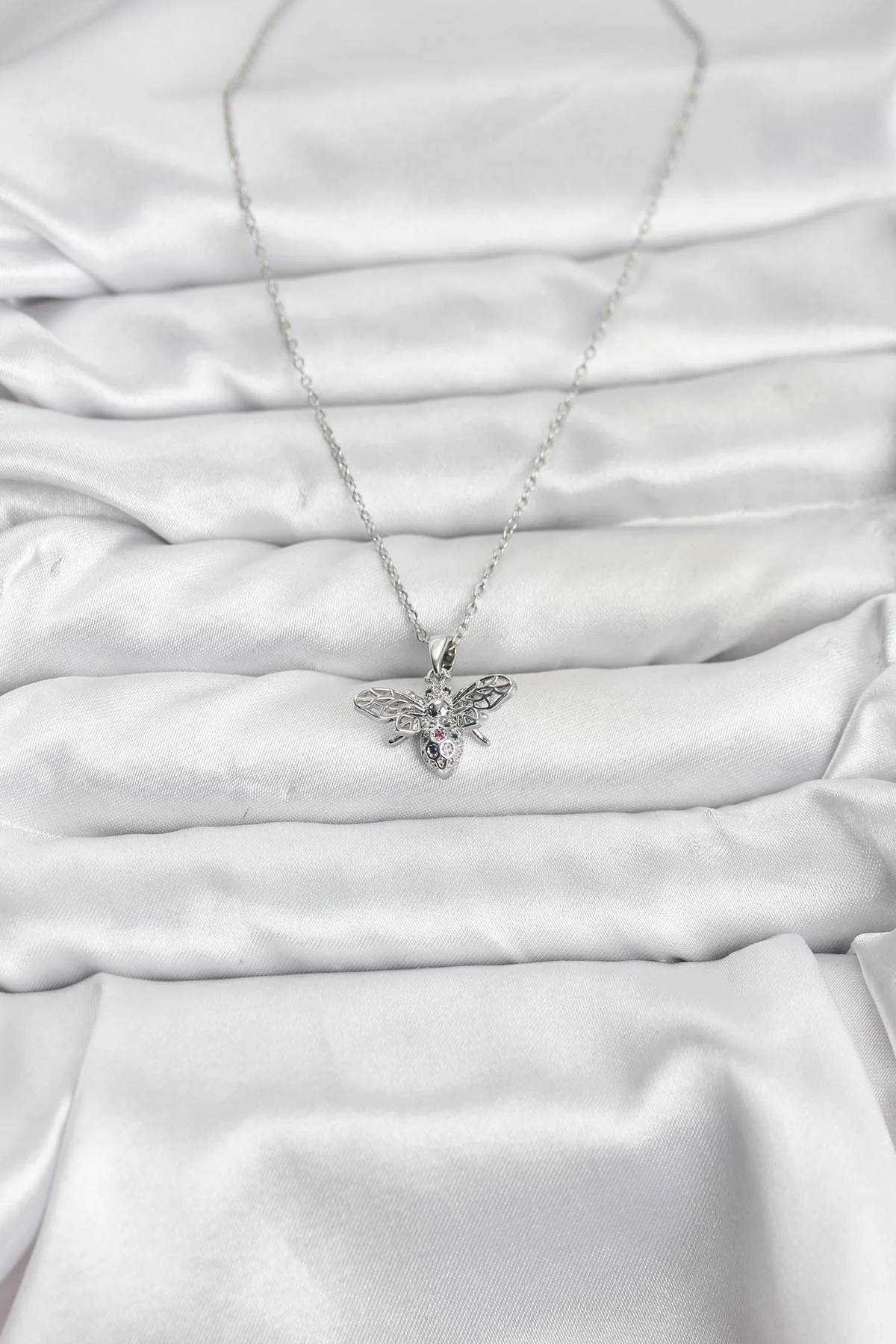 316L Çelik Zincir Gümüş Renk Sinek Model Zirkon Taşlı Kadın Kolye