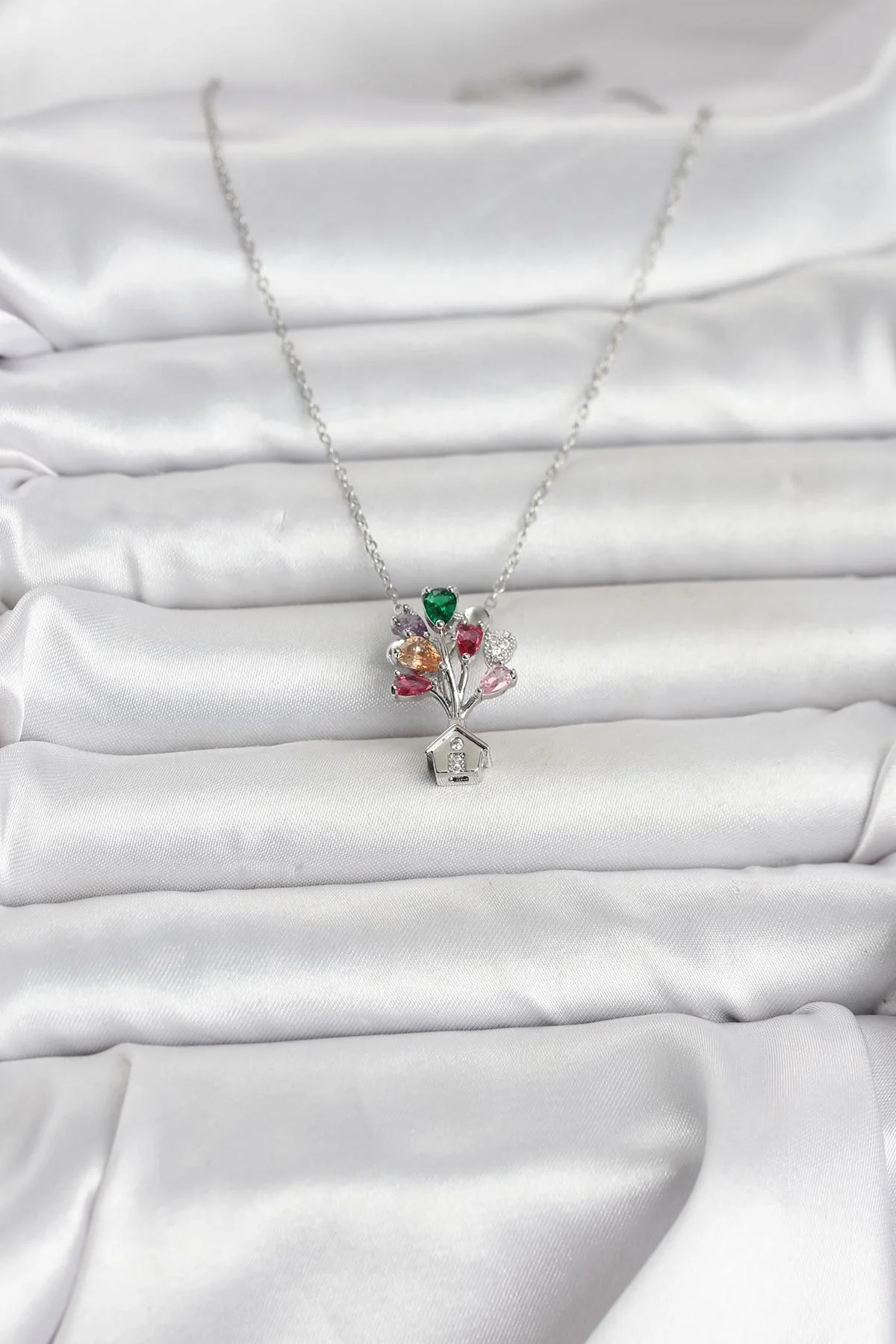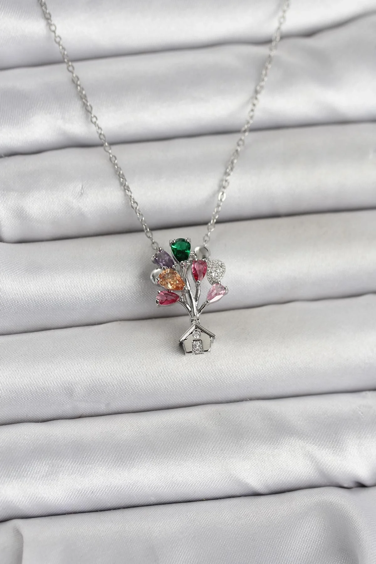 316L Çelik Zincir Gümüş Renk Uçan Balon Ev Figür Kadın Kolye