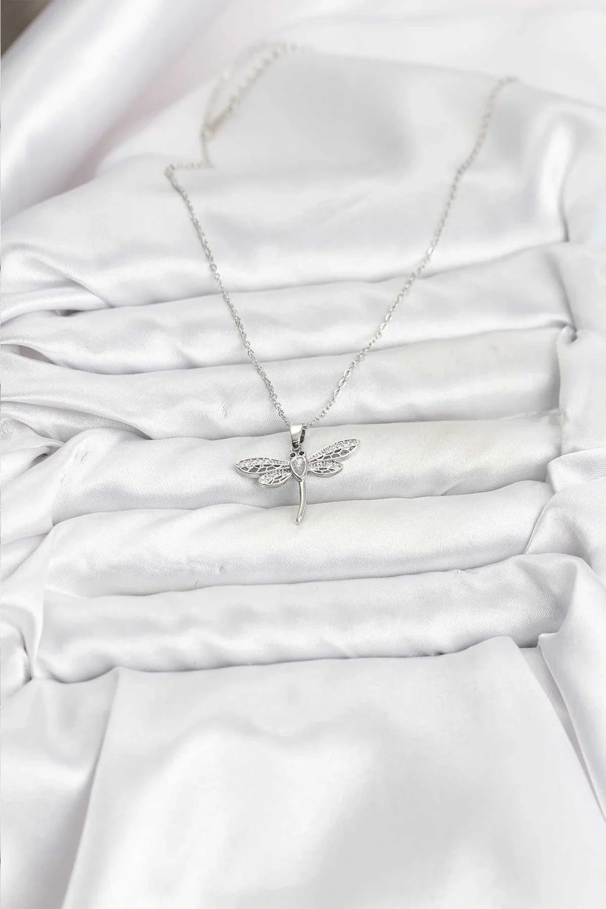 316L Çelik Zincir Gümüş Renk Yusufçuk Model Kadın Kolye