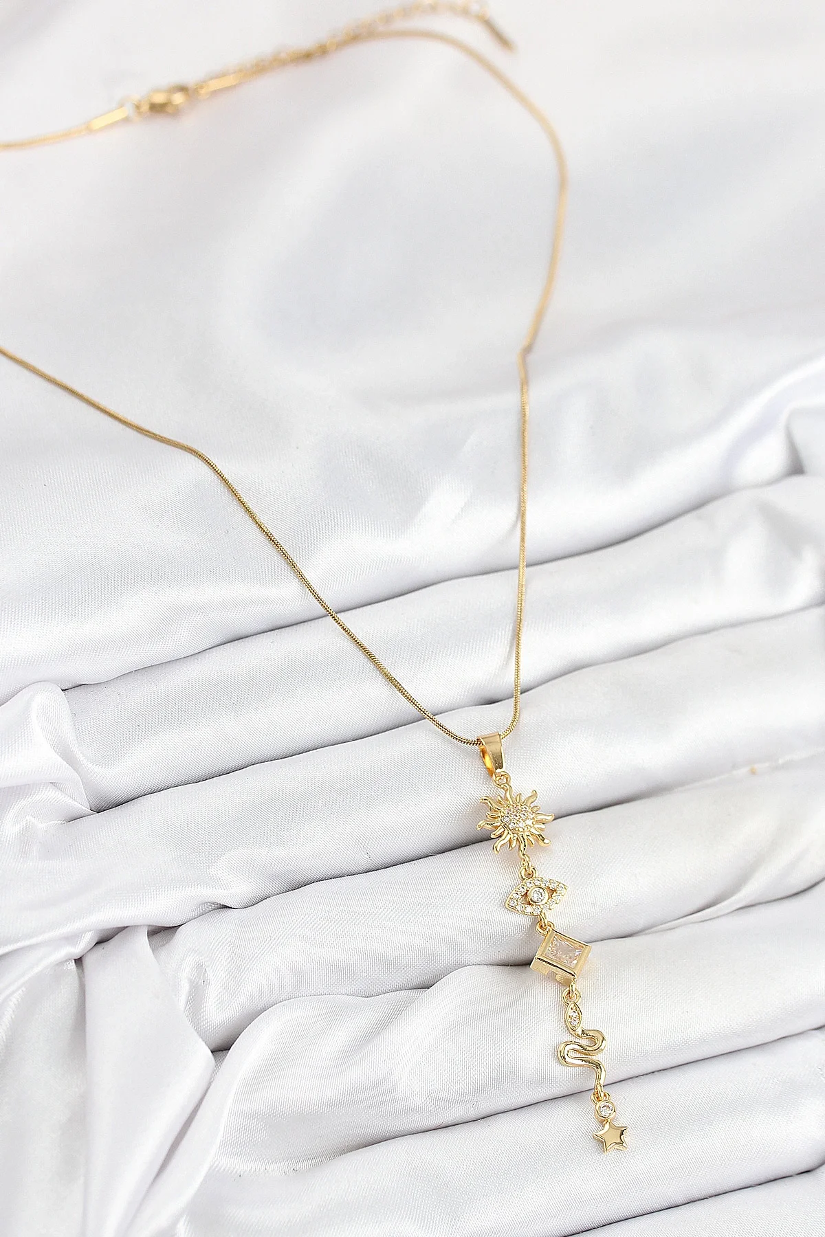 316L Çelik Zirkon Taşlı Güneş Ve Ay Enerji Model Gold Renk Kadın Kolye