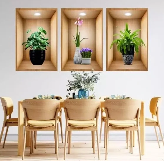 Geniş kullanım alanı 3D efektli duvar çıkartmaları vazo ve çiçek deseni olarak tasarlanmıştır ve eviniz için dekorasyon olarak mükemmeldir. Duvar, kapı, dolap, pencere, buzdolabı vb. için uygundur.