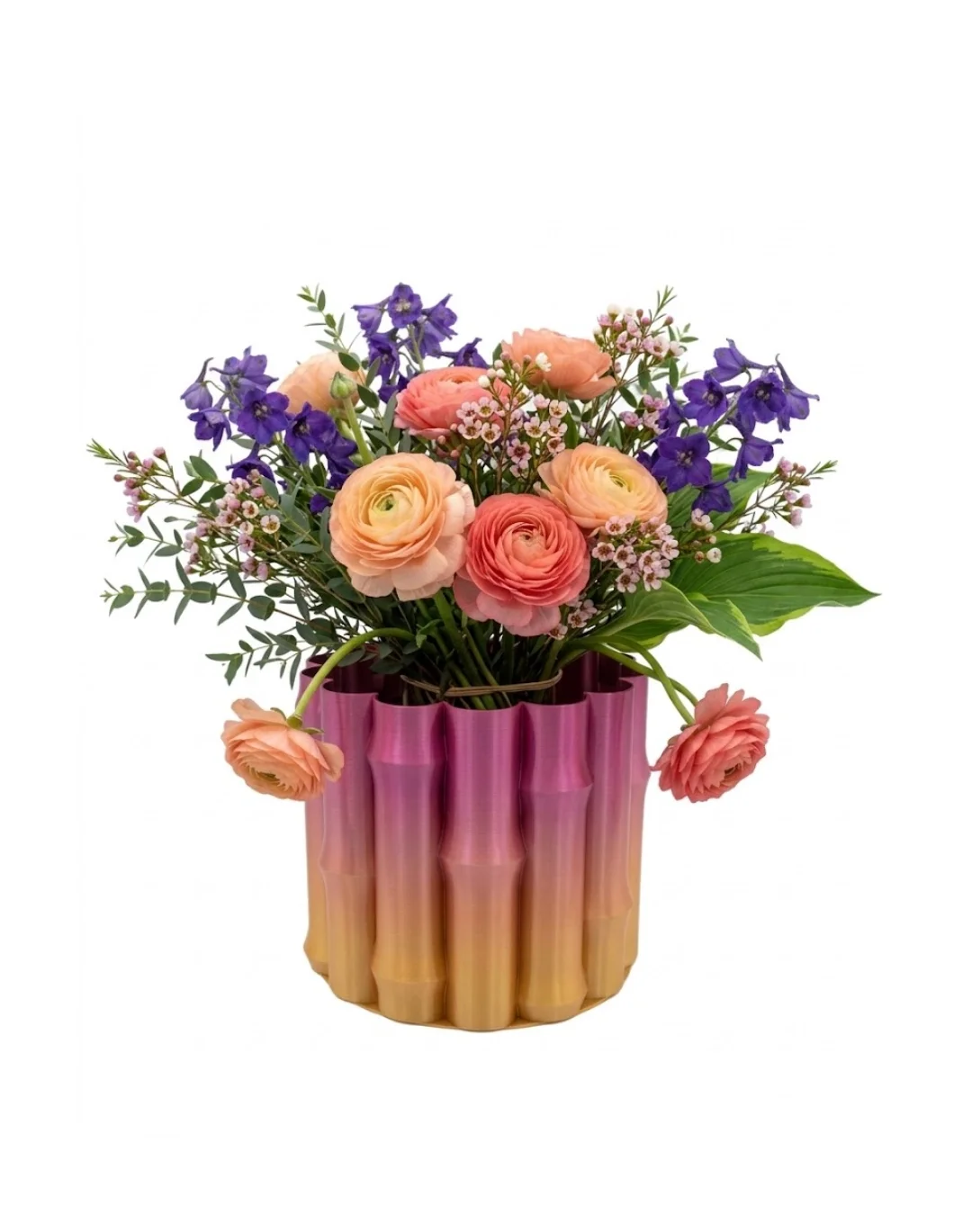 Modern 3D Baskı Mor Sarı Vazo Ev Ofis Dekorasyon Şık Tasarım