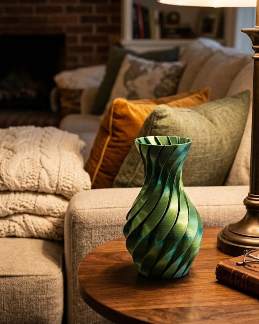 Yeşil Spiral 3D Baskı Vazo Estetik Modern Ev Ofis Dekoru