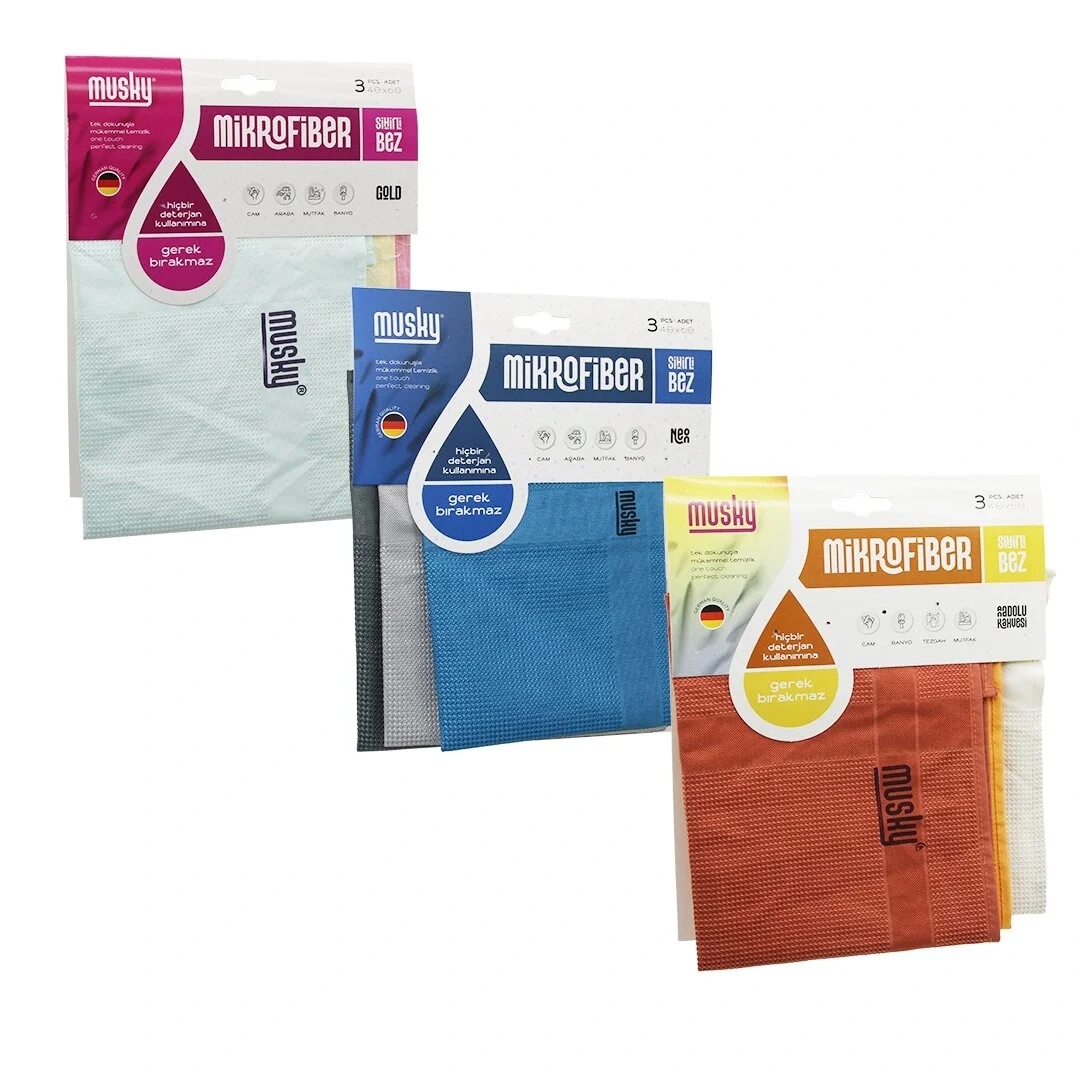 İz Bırakmayan Mikrofiber Temizlik Bezi 3'lü Set Cam ve Ayna Silme Toz Alma Temizlik Bezi (5047)