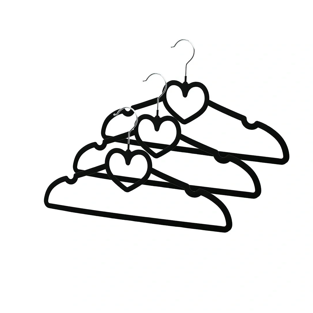 3PCS SİYAH KADİFE KAPLI - KALPLİ PLASTİK ASKI METAL UÇLU (5047)