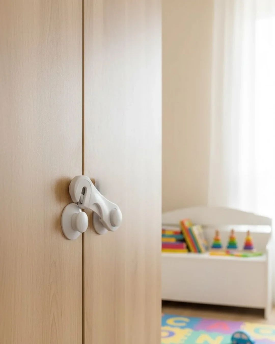 4 Adet Çocuk Güvenliği Dolap Kilidi Yapışkanlı Pratik Kullanım Ev İçi Koruma