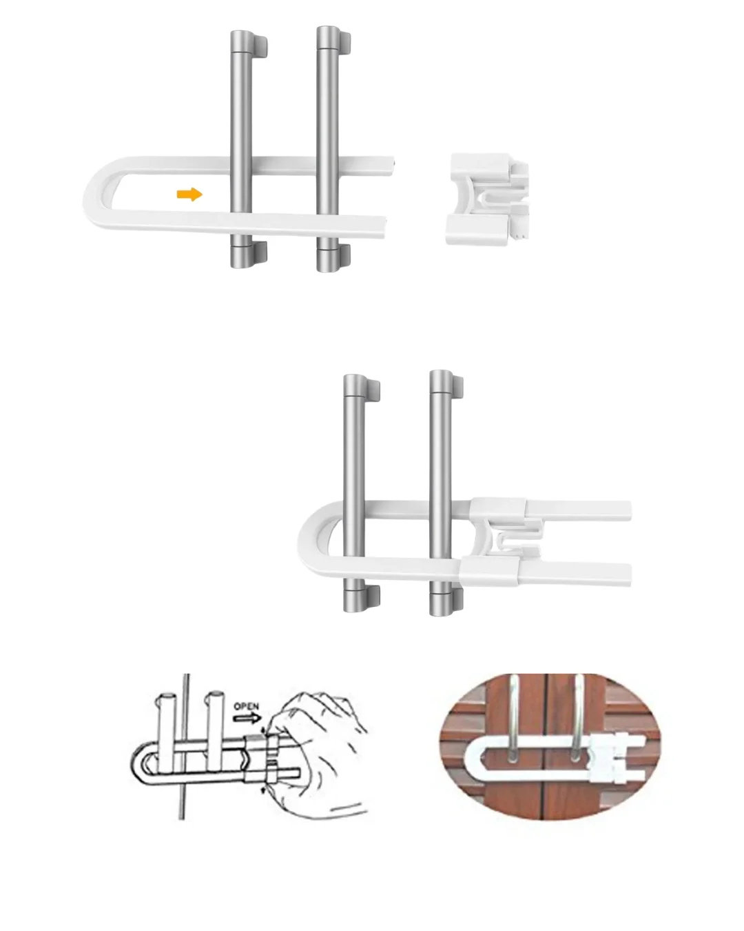 4 Adet Bebek ve Çocuk Koruyucu Dolap Kilidi Vida Gerektirmeyen Güvenlik Seti
