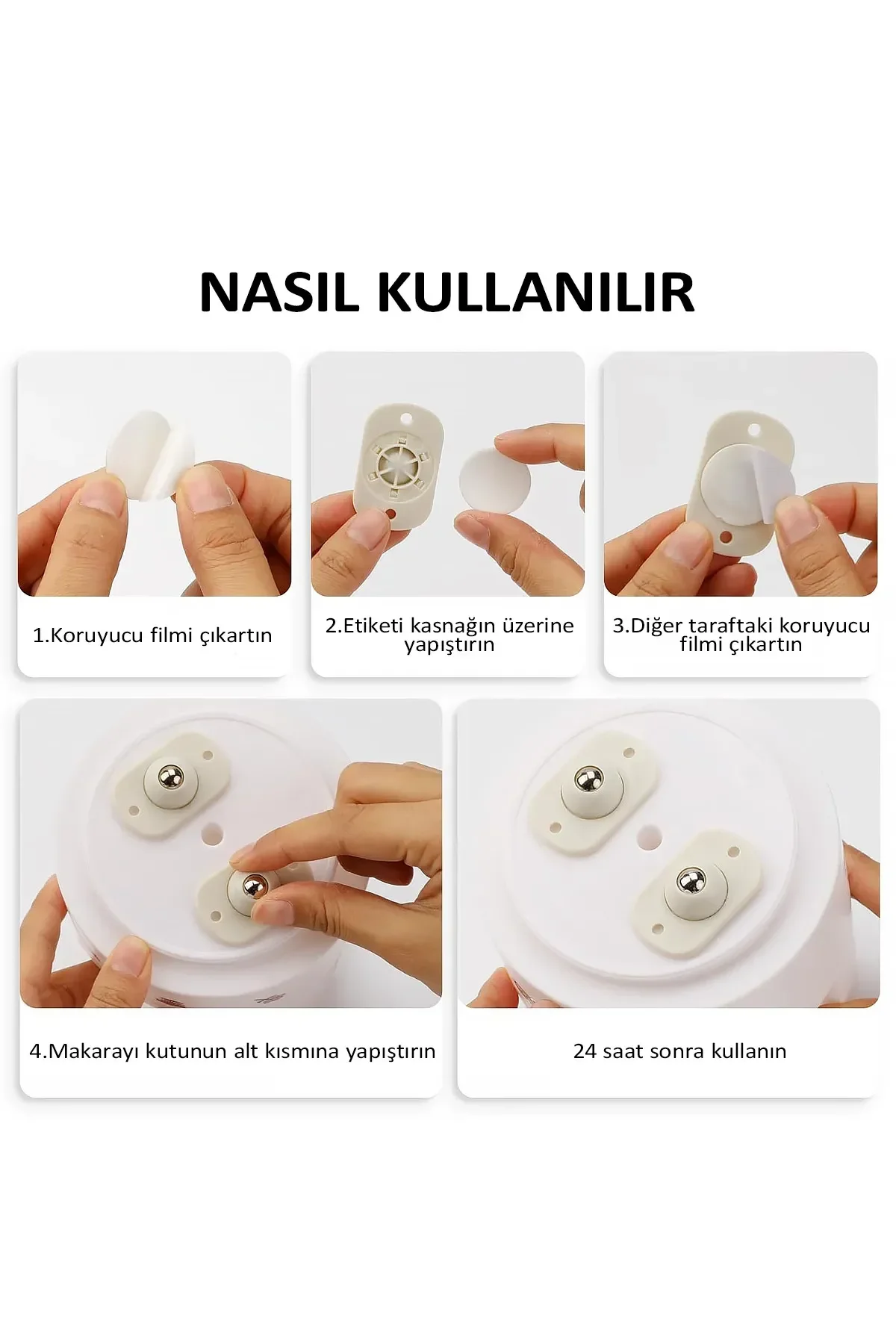 - Kullanım Şekli: - Taşımak istediğiniz mobilyanın köşelerinden hafifçe kaldırarak tekerlekli parçaları yerleştirin.
