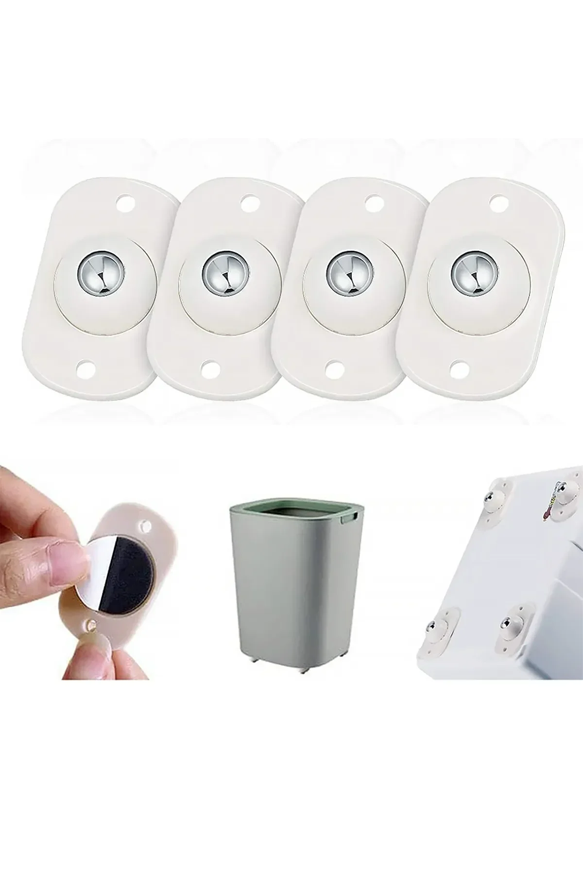 4 Adet Pratik 360 Derece Döner Tekerlek Bilyeli Eşya Kaydırma Aparatı Yapışkanlı Mini Tekerlekler