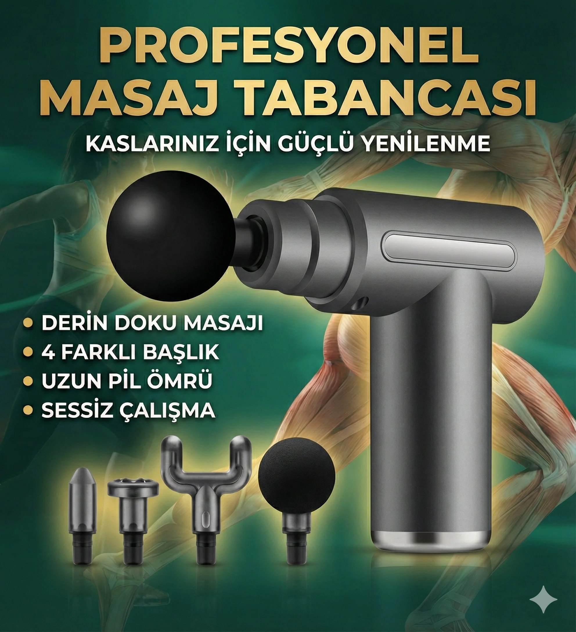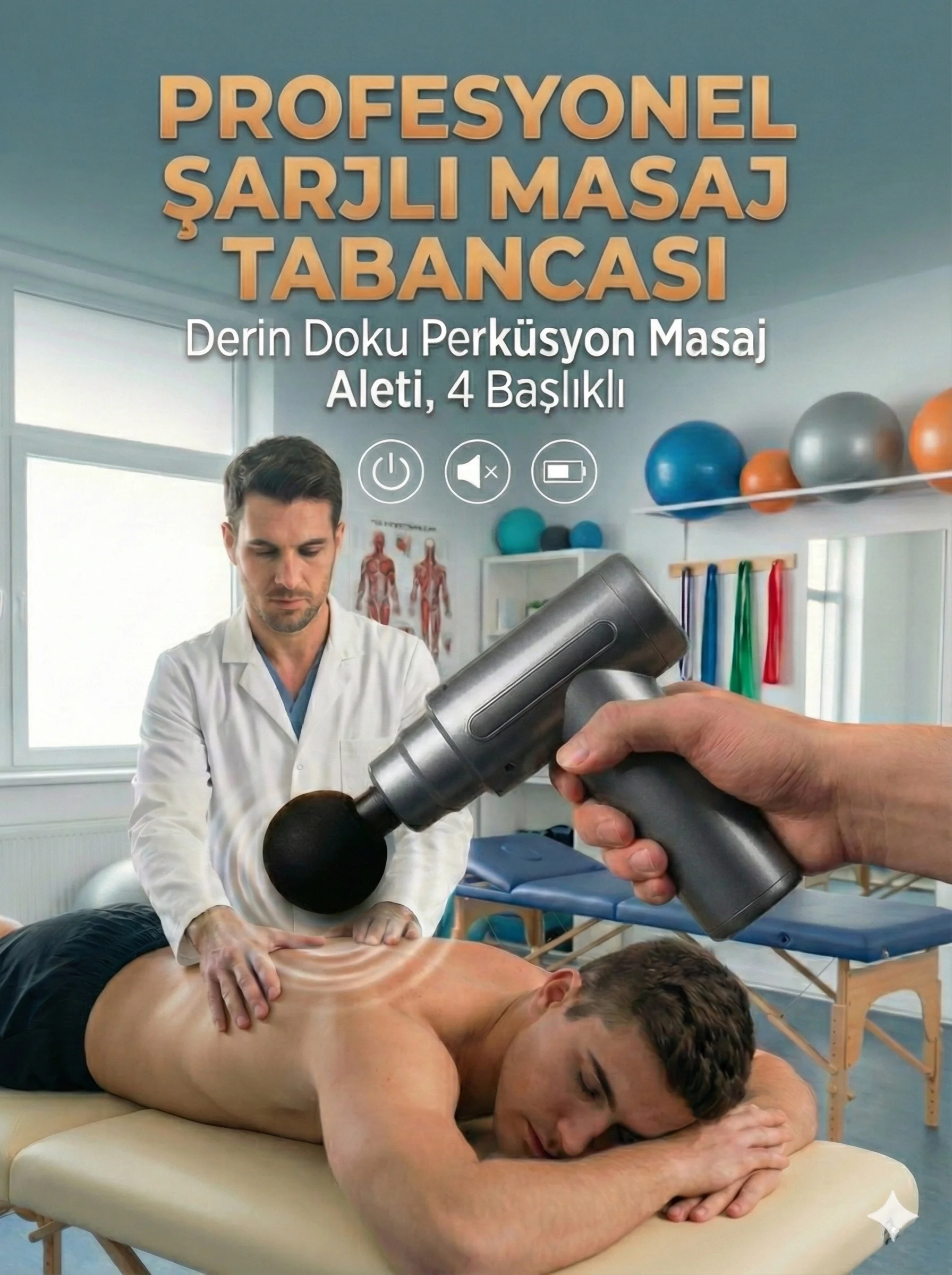 Masaj Tabancası Şarj Edilebilir 4 Masaj Başlıklı Titreşimli Küçük Masaj Aleti ile kendinizi şımartın, kaslarınızı rahatlatın ve konforu her an yanınızda hissedin!