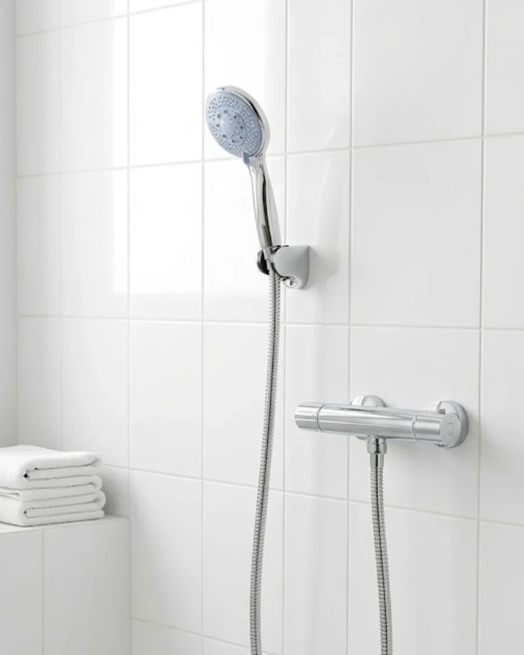 4 Kademeli Krem Duş Seti El Duşu Başlığı Spiral Hortum ve Duvar Askısı