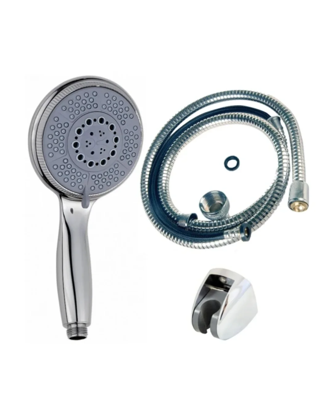 4 Kademeli Mavi Duş Seti El Duşu Başlığı Spiral Hortum ve Duvar Askısı