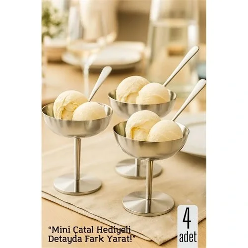 Bu paslanmaz çelik tatlı kasesi; 11 cm çapı ve 10 cm yüksekliğiyle dondurma, meyve, puding ve özel tatlılar için ideal bir sunum kabıdır.
