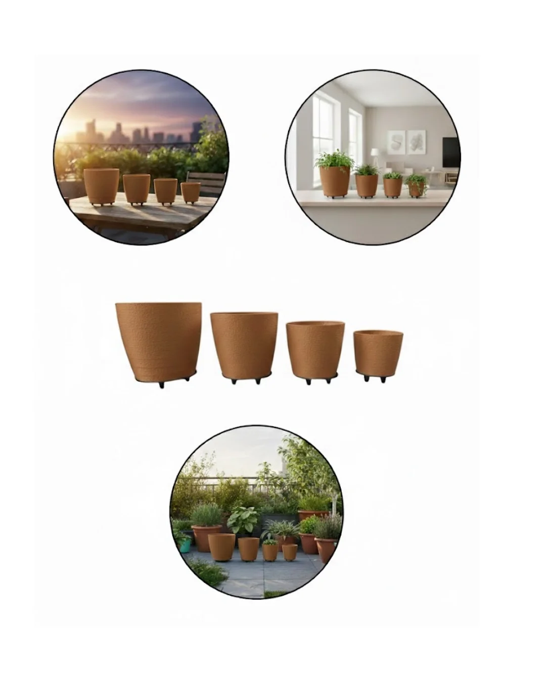 4’lü 3D Kahverengi Ayaklı Dekoratif Saksı Takımı Modern Tasarım