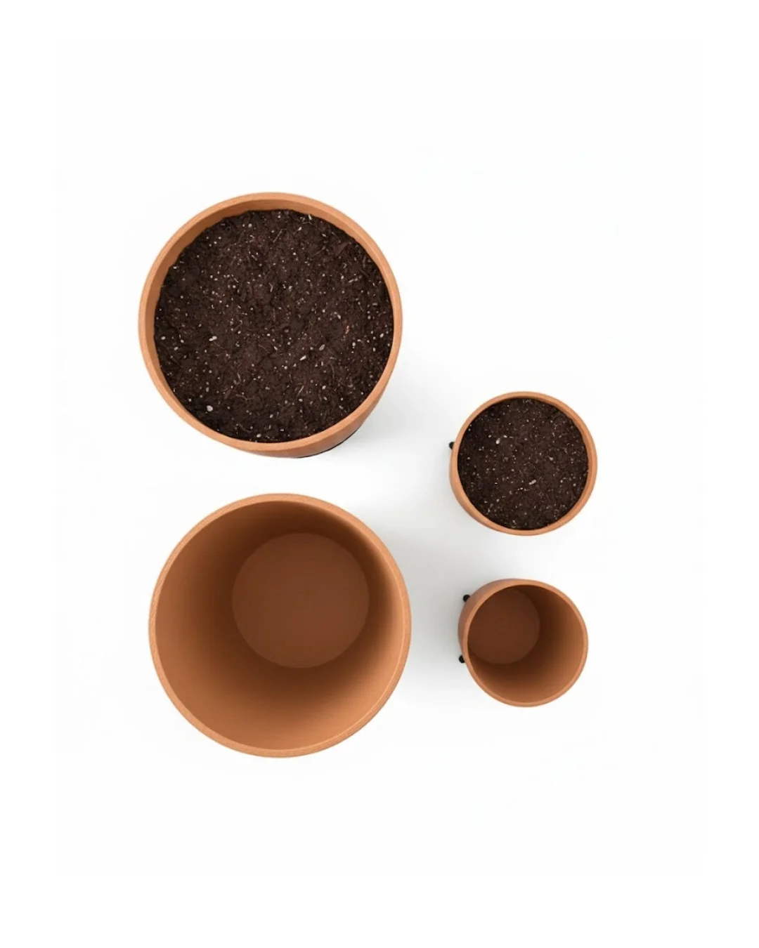 4’lü 3D Kahverengi Ayaklı Dekoratif Saksı Takımı Modern Tasarım