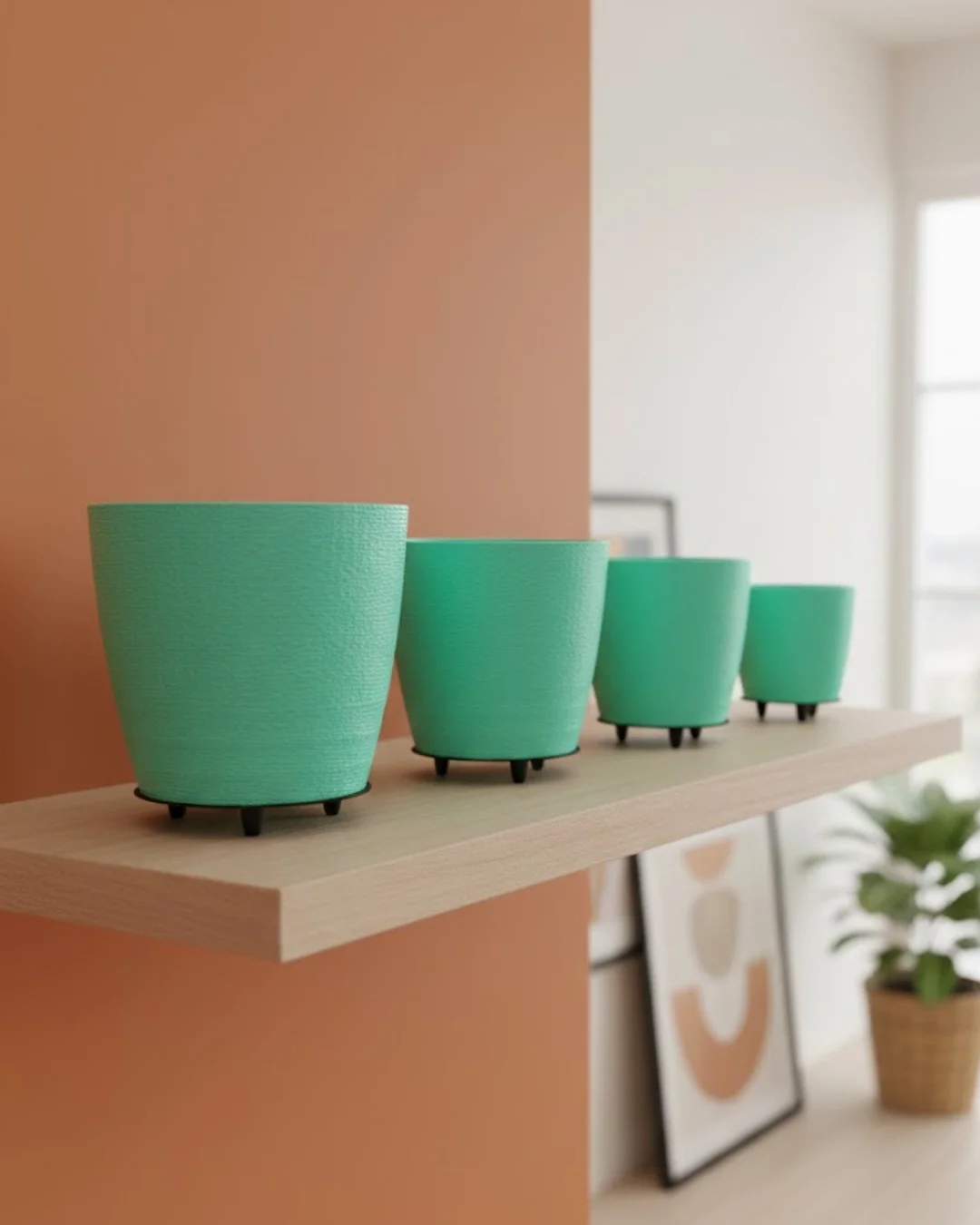 4’lü 3D Ayaklı Yeşil Saksı Seti Dekoratif Modern Tasarım