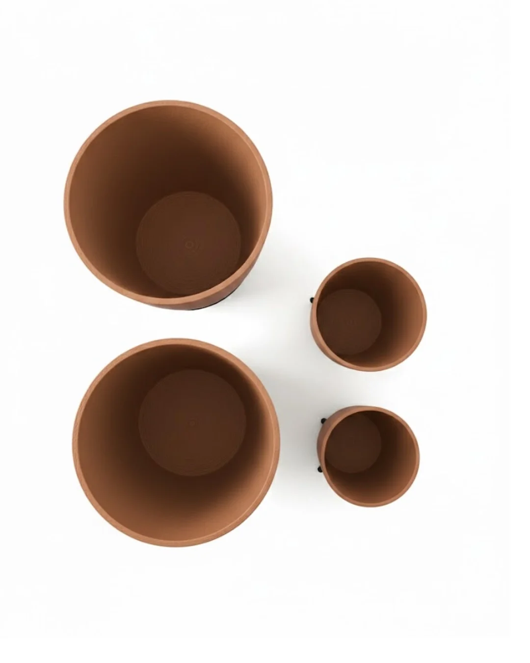 4’lü 3D Kahverengi Ayaklı Dekoratif Saksı Takımı Modern Tasarım
