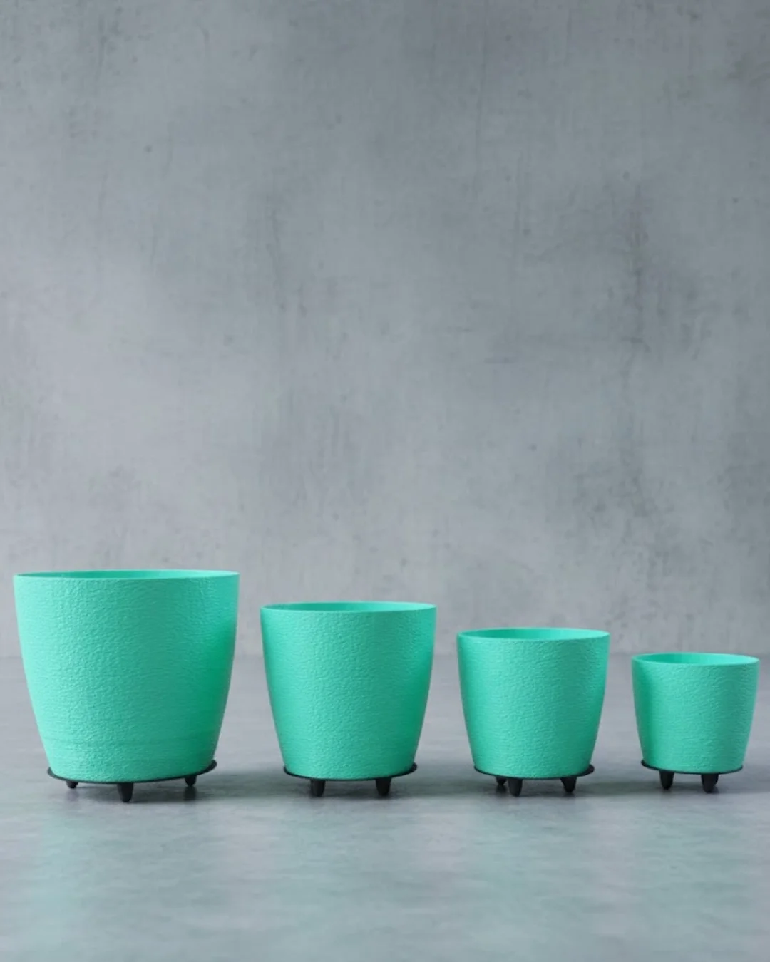 4’lü 3D Ayaklı Yeşil Saksı Seti Dekoratif Modern Tasarım