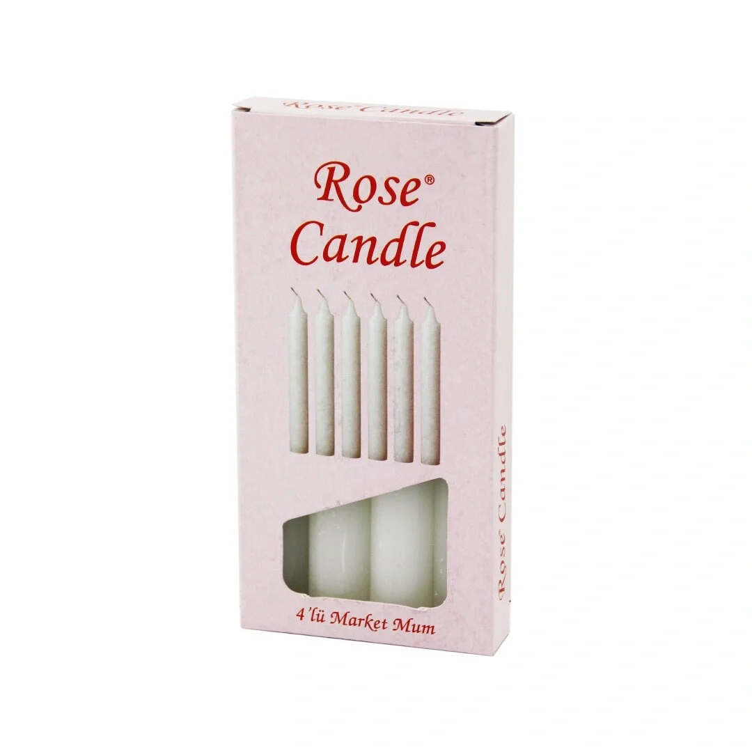 4PCS - KALIN ÇAP=2CM - UZUNLUK=15CM BEYAZ KLASİK MARKET MUM (5047)