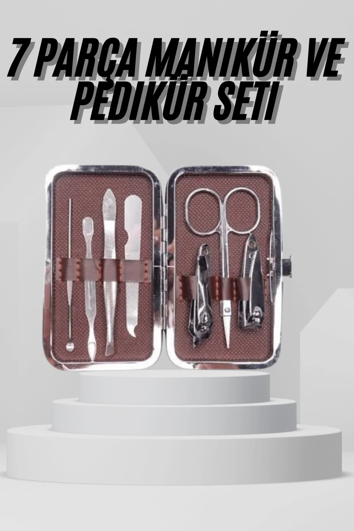 7 Parça Paslanmaz Çelik Manikür ve Pedikür Seti Çantalı Profesyonel