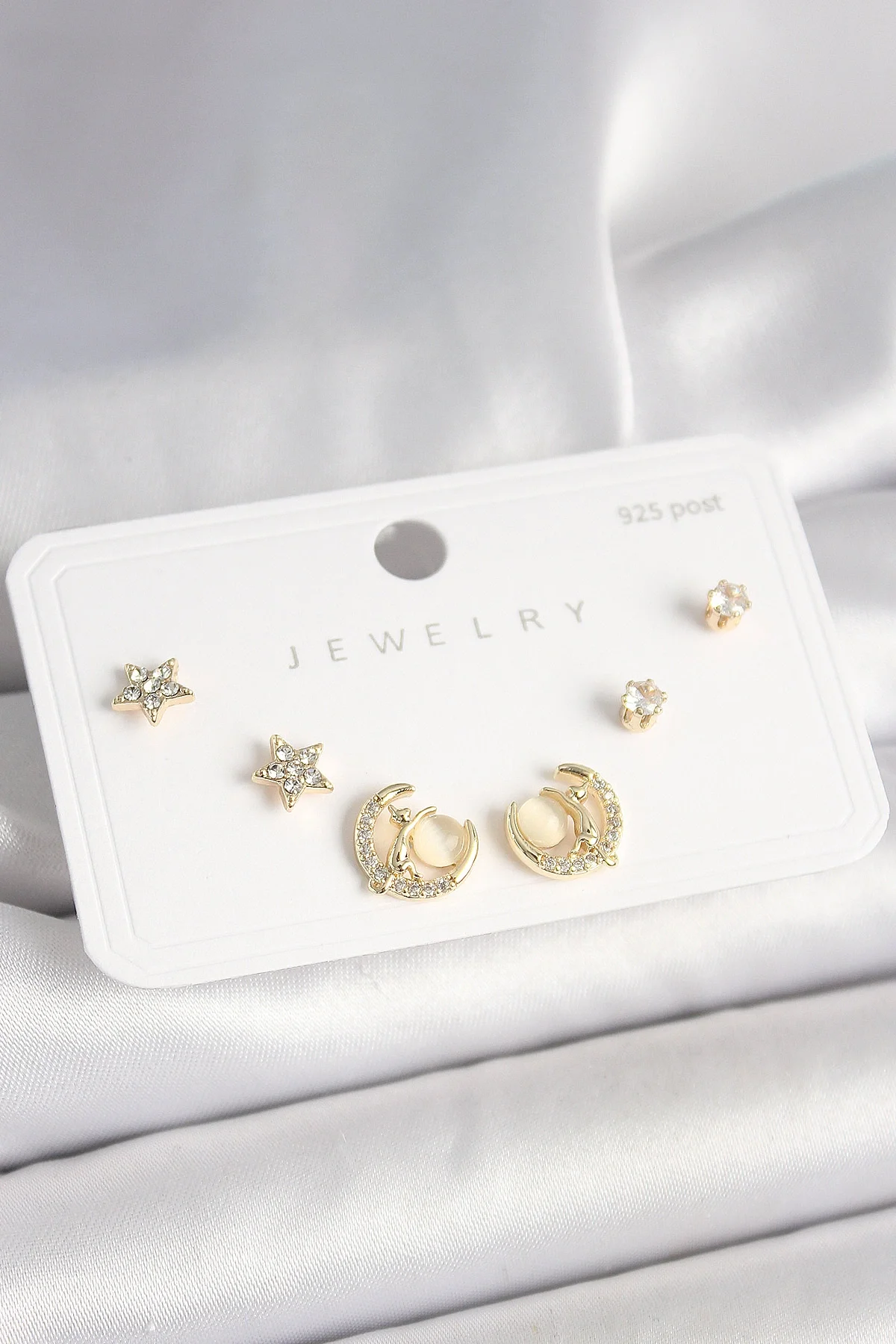 925 Ayar Gümüş Çivi Zirkon Taşlı Hilal Yıldız Model Kadın Küpe Seti