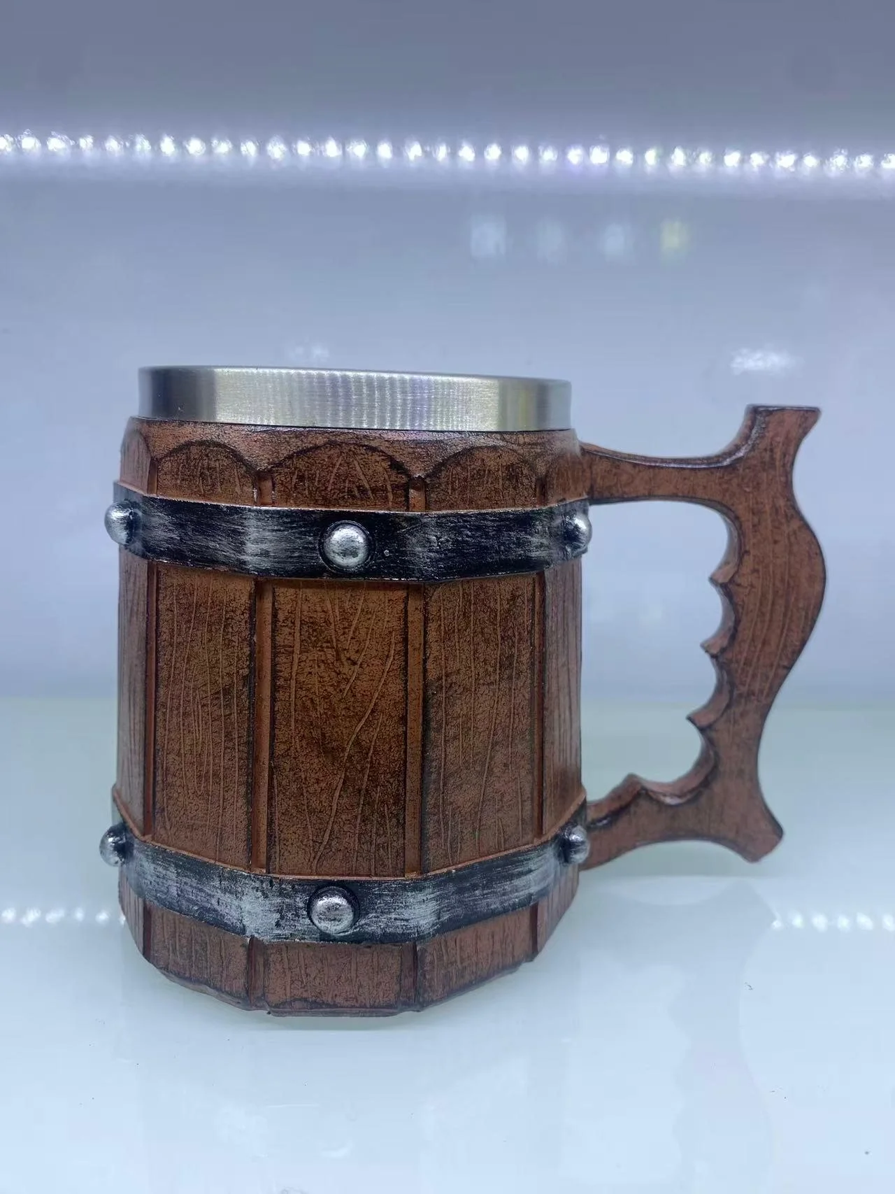 Ahşap Fıçı Şeklinde Çelik Kupa