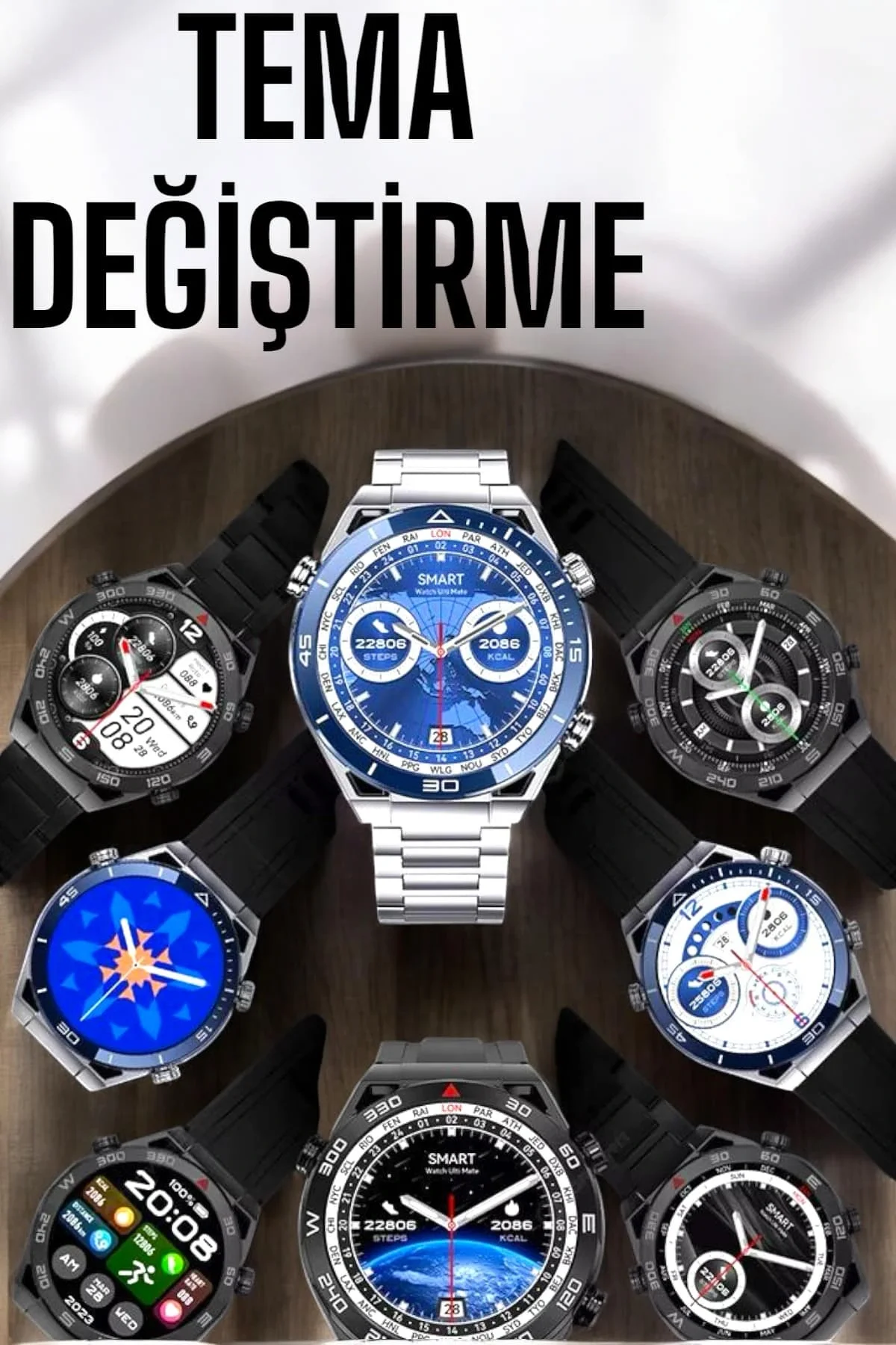 7 Kordonlu Akıllı Saat Plastik Kordon Hasır Kordon Çelik Kordon