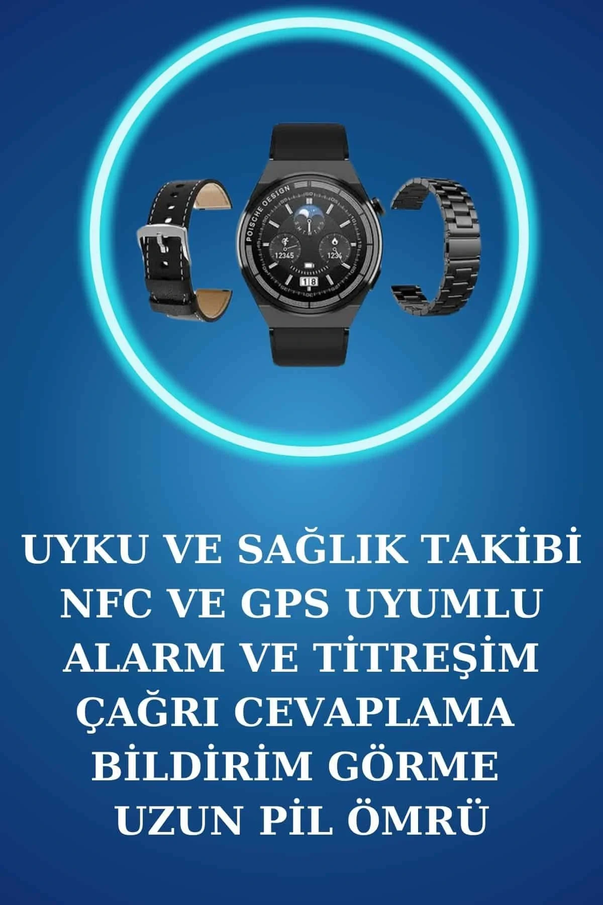 Akıllı Saat Amoled Ekran Metal Ve Deri Kordonlu Uyku ve Sağlık Takibi Titreşimli