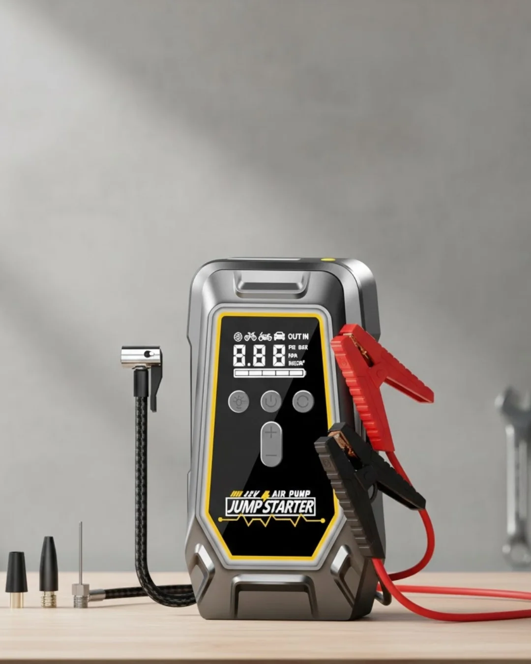 Taşınabilir Araç Akü Takviye ve Hava Kompresörü Powerbank Özellikli