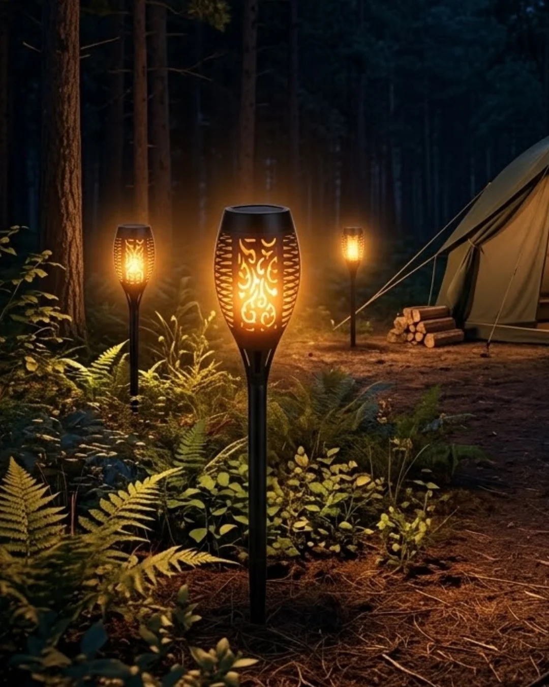 Solar Alev Efektli Bahçe Lambası Otomatik Işık Sensörlü Suya Dayanıklı Dekoratif Aydınlatma