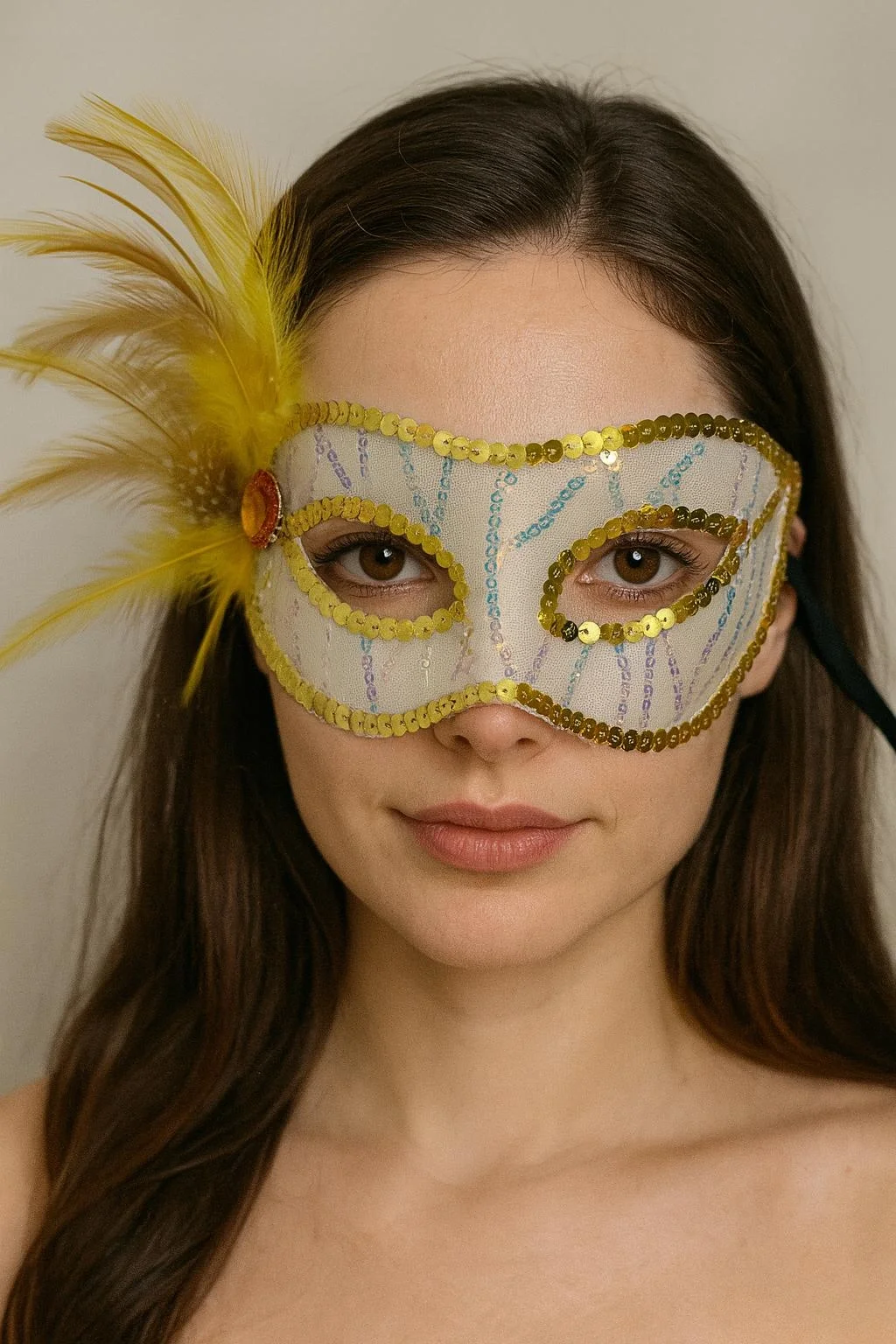Altın Renk Yandan Tüylü Pul Payet İşlemeli Parti Maskesini Neden Seçmelisiniz?