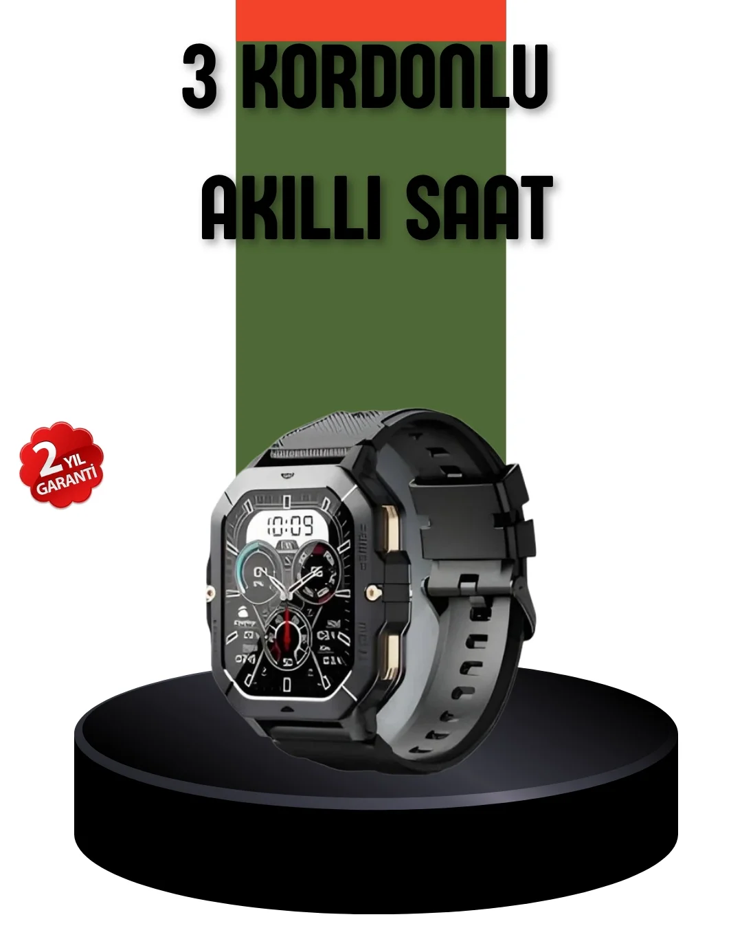 3 Kordonlu Akıllı Saat Uzun Pil Süreli