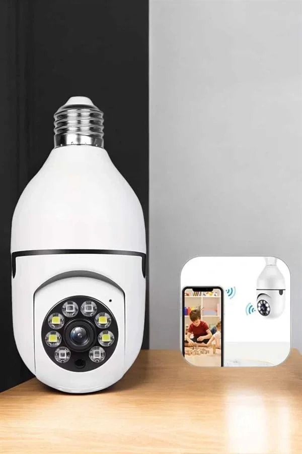 Wifi Kamera Duylu Ampul Görünümlü 360 Derece Dönebilen Ev Kamerası