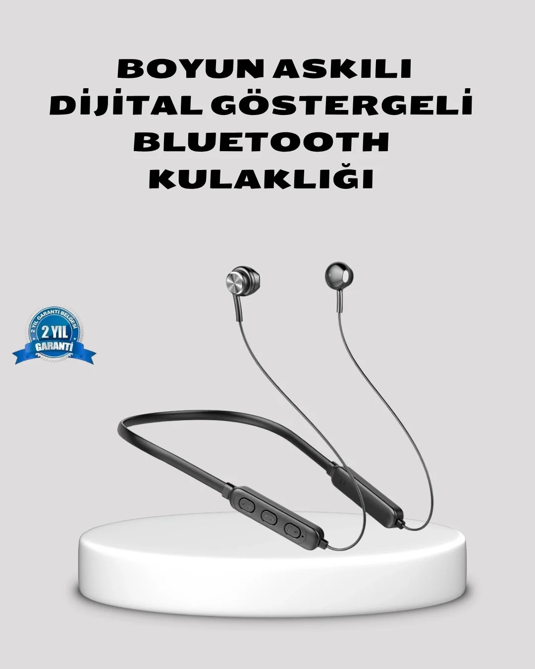 Dijital Göstergeli Kulak İçi Kablosuz Bluetooth Kulaklık Boyun Bantlı