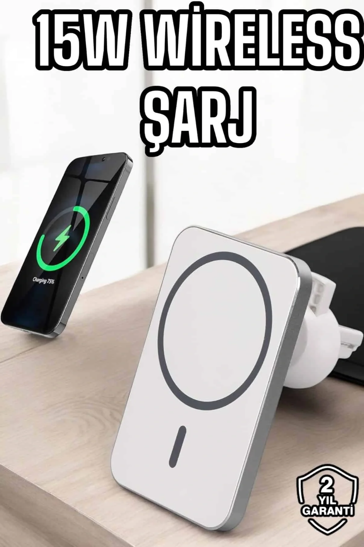 Kablosuz Şarj Aleti Magsafe Araç Içi Manyetik Şarj 15W İOS Uyumlu