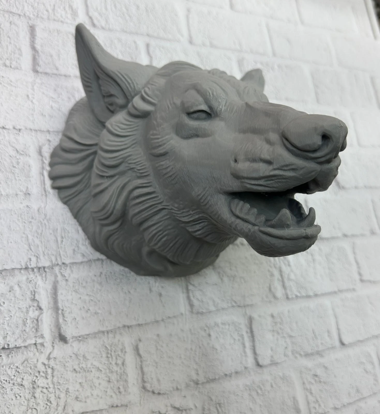 Asılabilir Gri Kurt Heykeli Ev Ofis Duvar Süslemesi Dekoratif