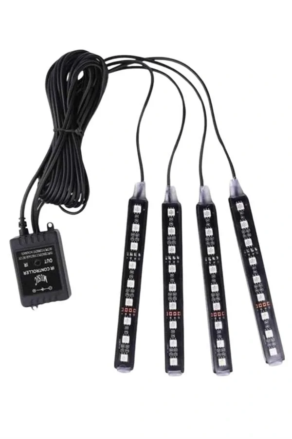 RGB Araç İçi LED Aydınlatma 12V 48 LED Müzik Kontrollü 4 Şerit Set