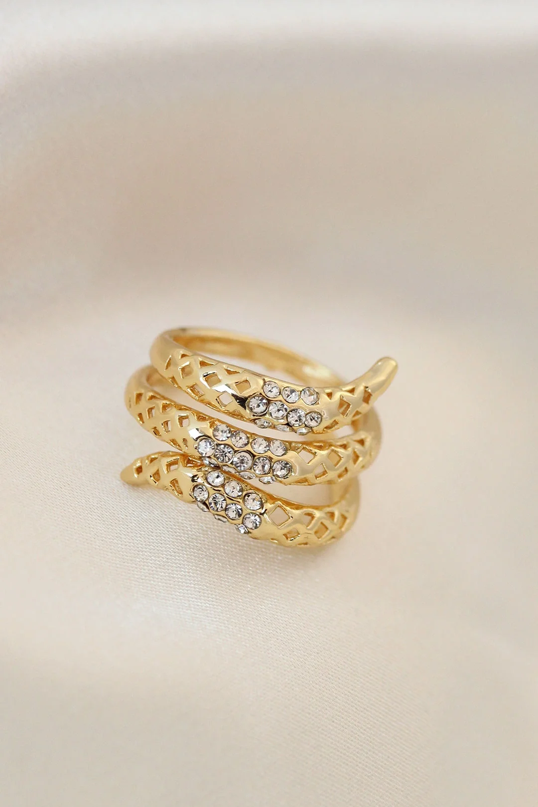Ayarlamalı Altın Renk Metal Zirkon Taşlı Yüzük
