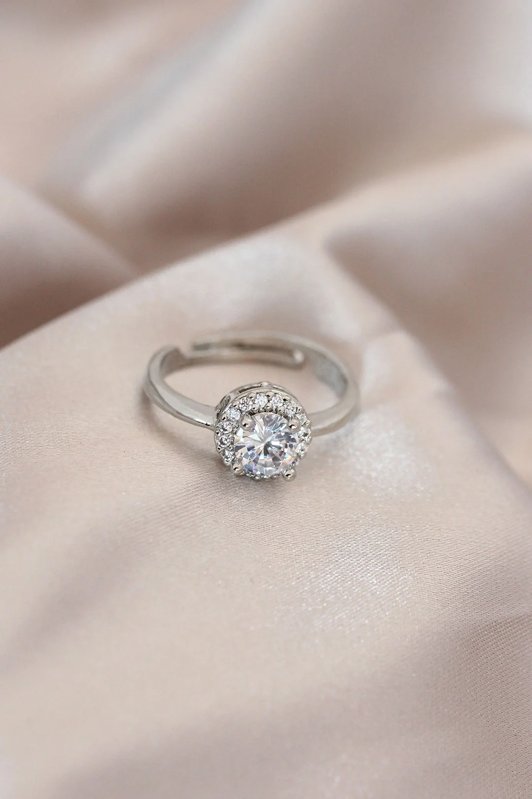 Ayarlamalı Gümüş Renk Metal Zirkon ve Kristal Taşlı Oval Model Yüzük