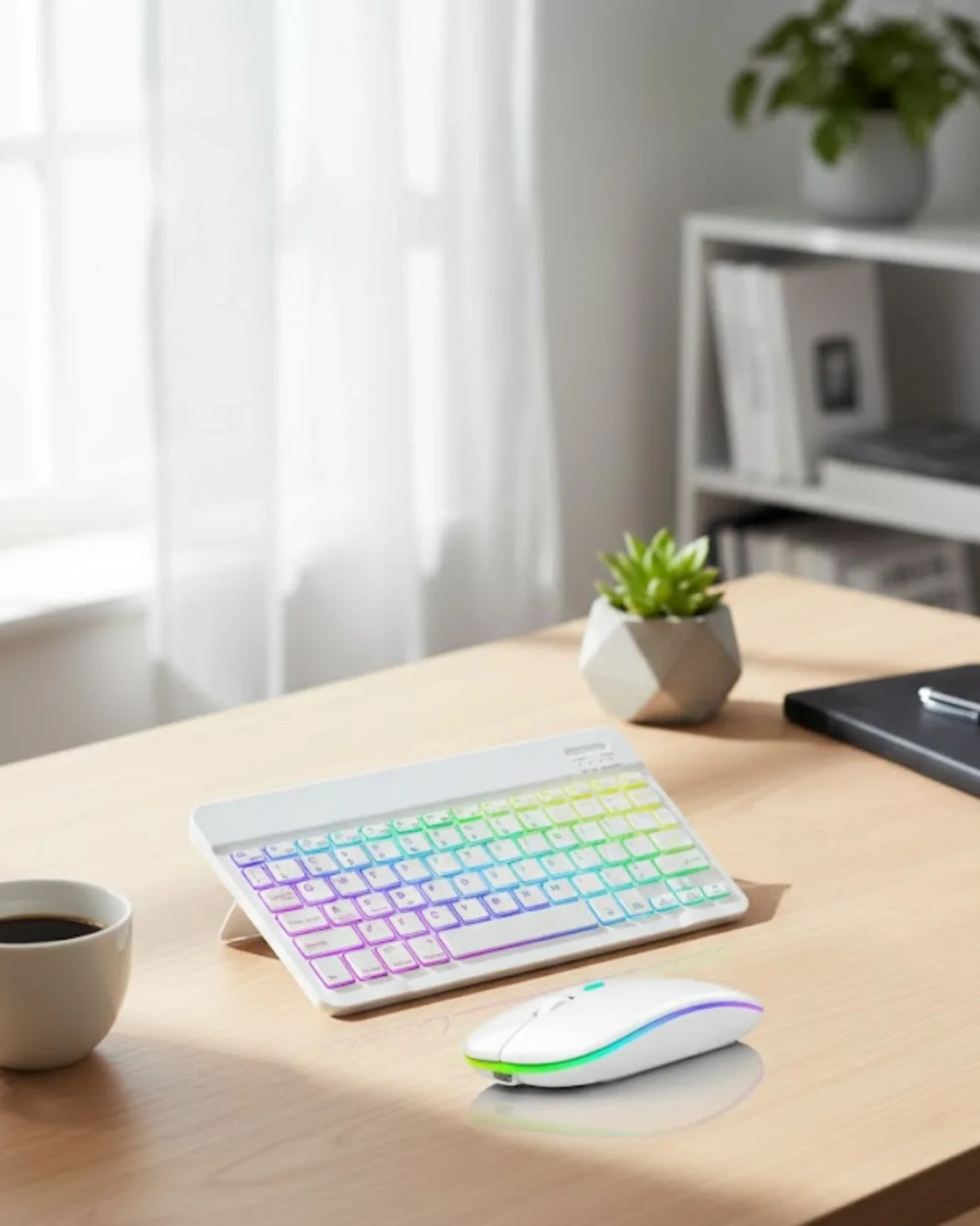Çoklu Cihaz Uyumlu Kablosuz Klavye Mouse Seti Aydınlatmalı