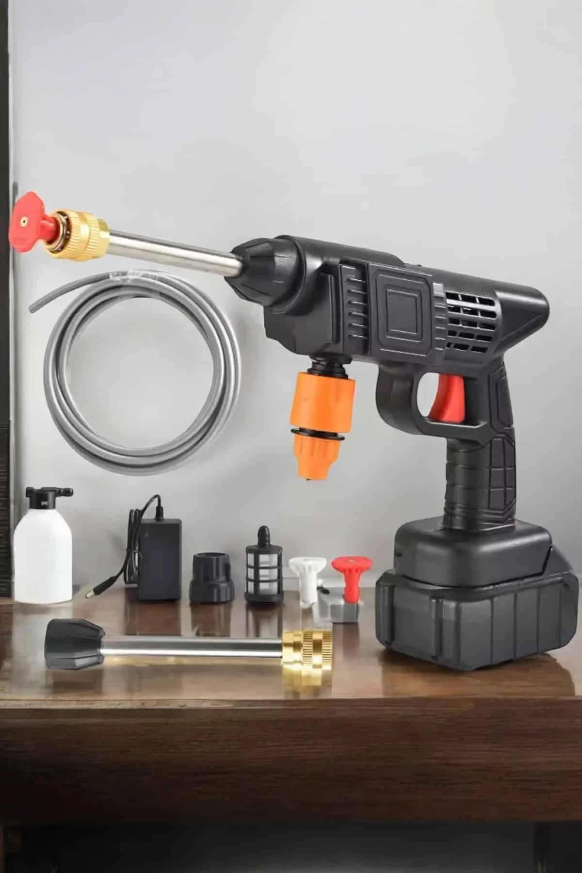 Taşınabilir Basınçlı Yıkama Makinesi – 5m Hortumlu, Köpük Şişeli, 48V Güçlü