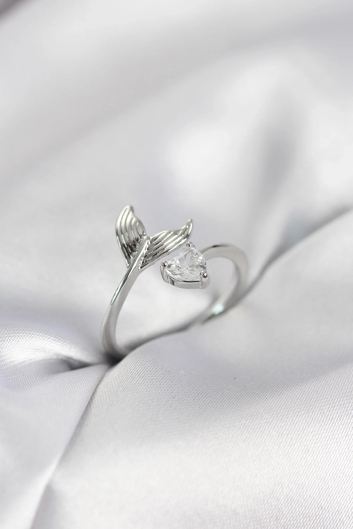 Balık Kuyruğu Model Gümüş Renk Zirkon Taşlı Kadın Yüzük