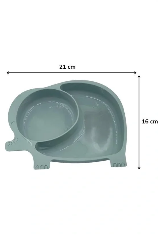 Fil desenli mama kabında bölme olması bebeklerin farklı çeşit yemekleri aynı anda yemesine olanak sağlar