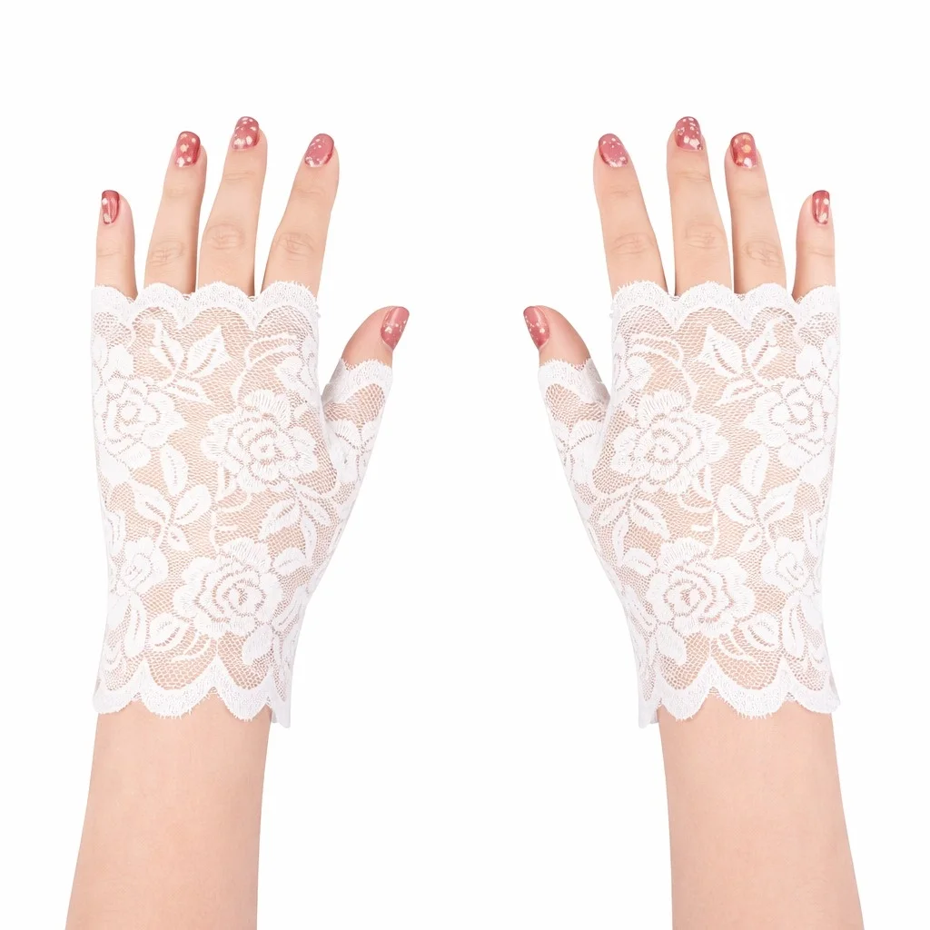 Zarif ve estetik tasarımıyla öne çıkan beyaz gül desenli dantel parmaksız eldiven, şık kombinler ve özel etkinlikler için ideal bir aksesuardır. İnce dantel dokusu ve gül desenli tasarımı ürüne zarif bir görünüm kazandırır.