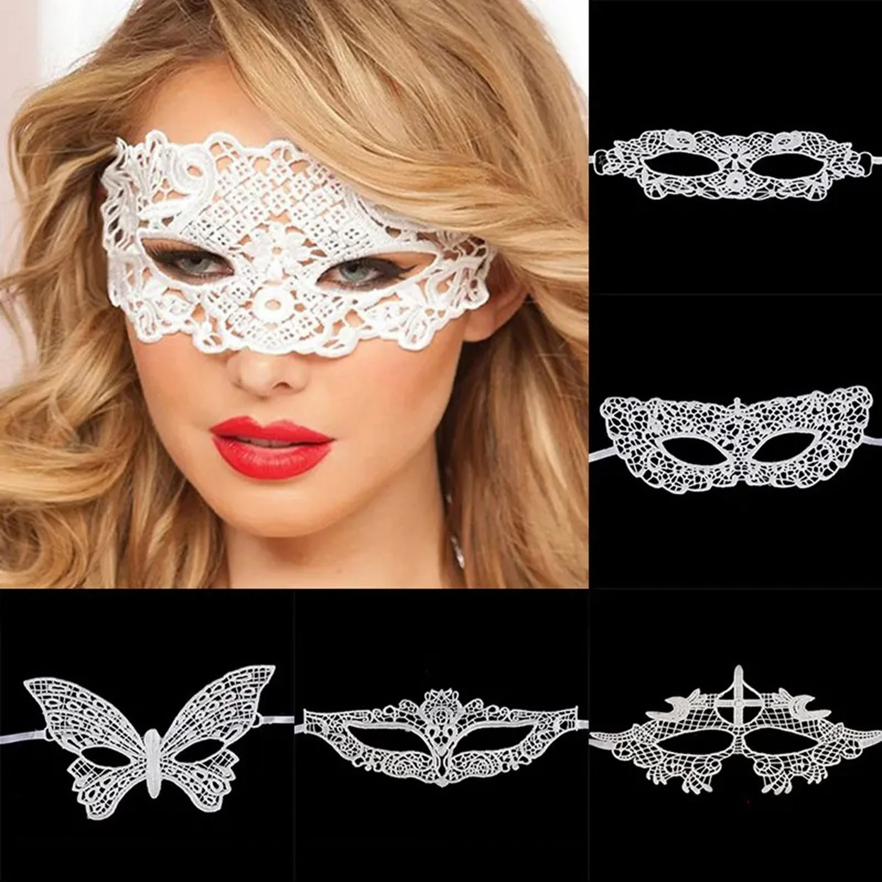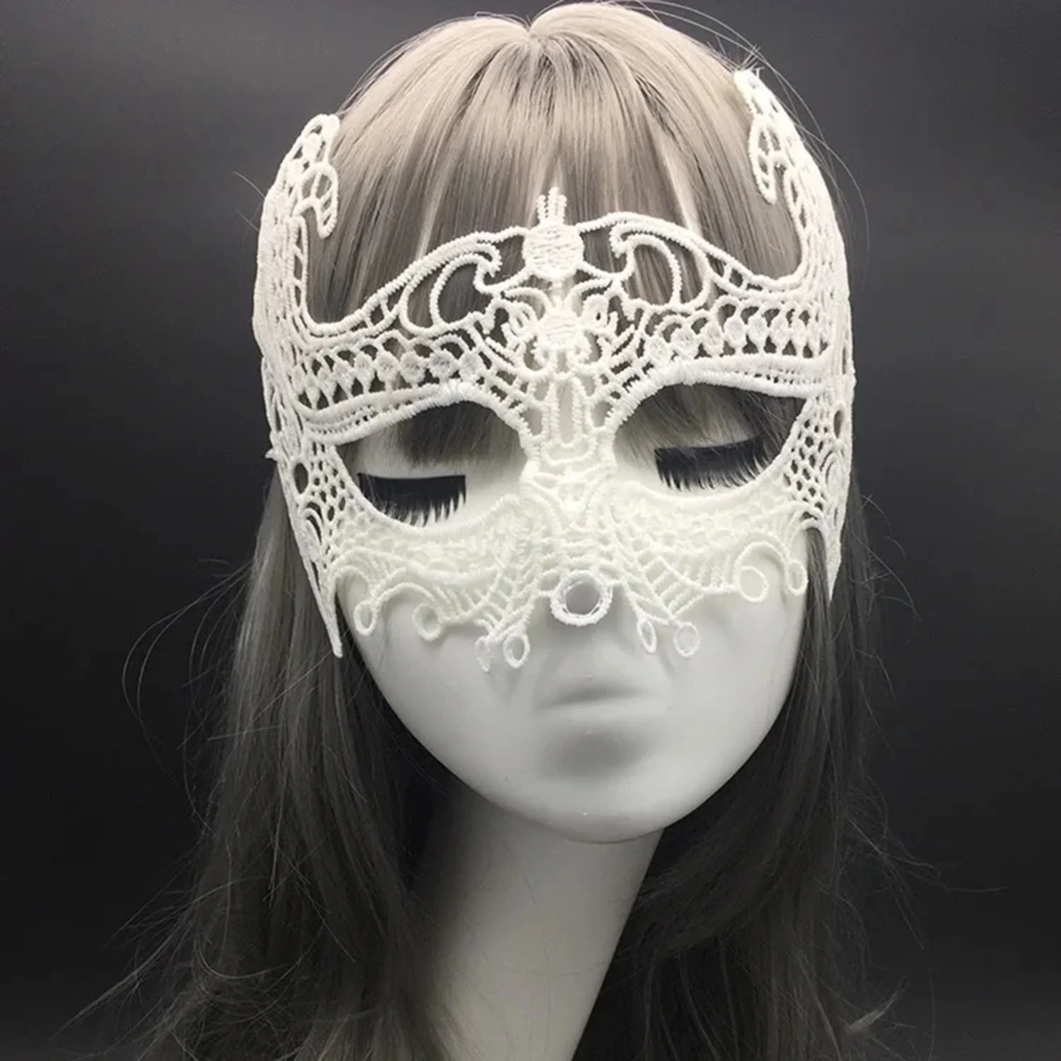 Beyaz Renk Dantel Kesim Dantel İşlemeli Balo Parti Maskesi