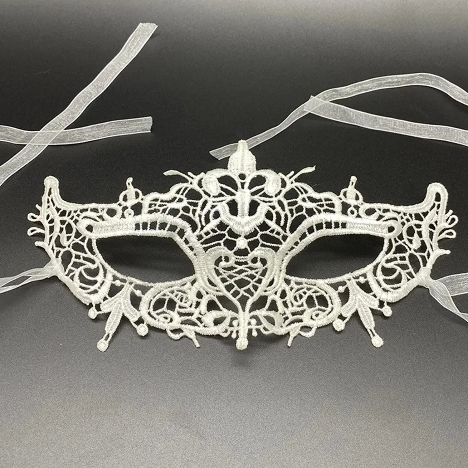 Maskenin üzerinde bulunan dantel işlemeler, ürüne zarif ve romantik bir hava katar. Bu işlemeler, maskenin şıklığını ve göz alıcılığını bir üst seviyeye taşır.