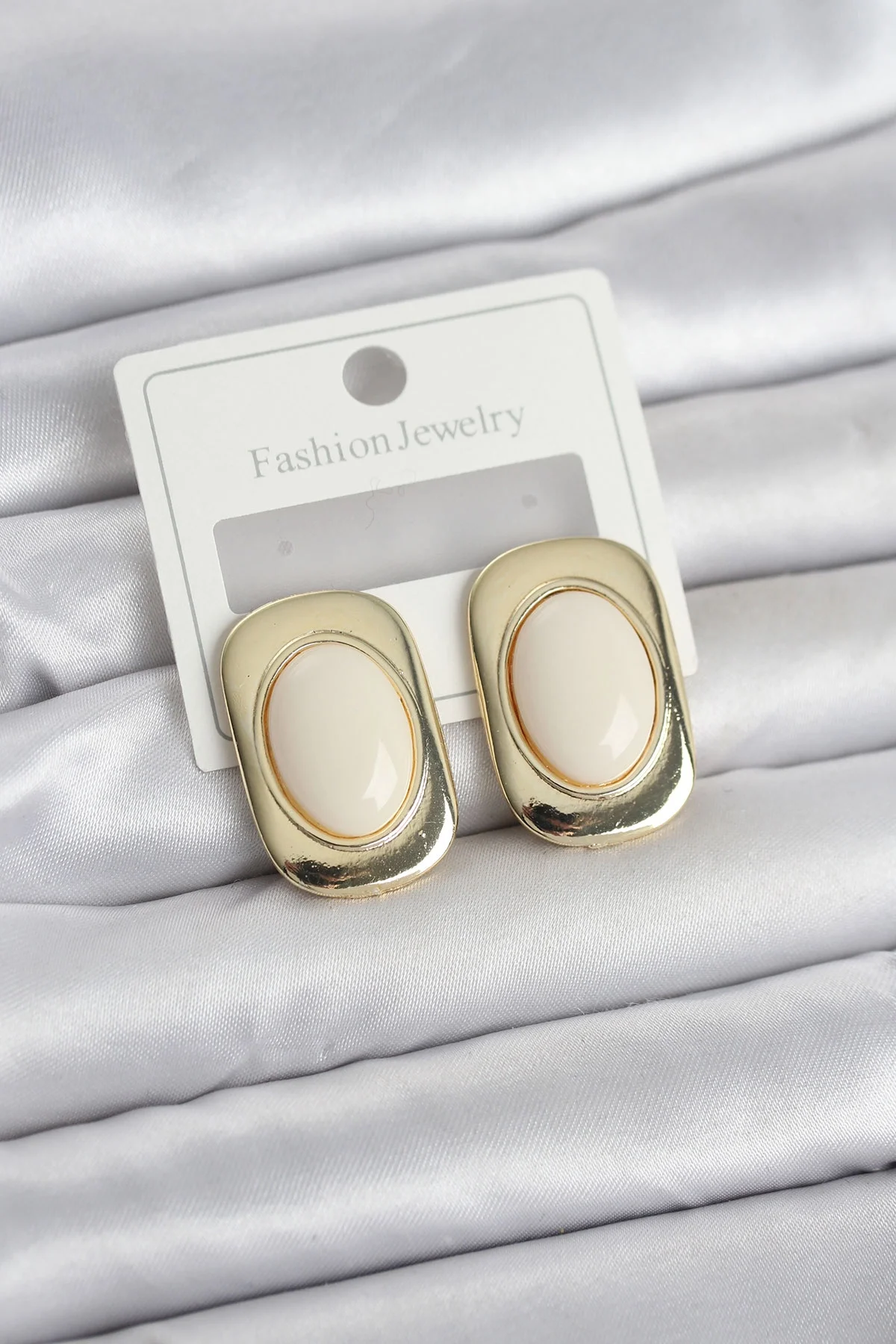 Beyaz Renk Kare Model Vintage Kadın Küpe