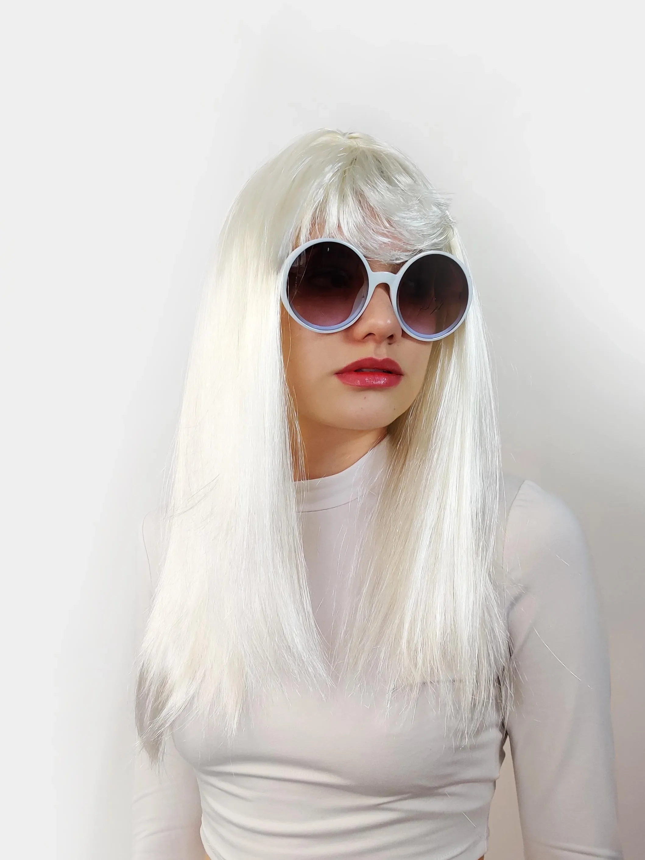 Beyaz Renk Uzun Düz Parti Peruğu
